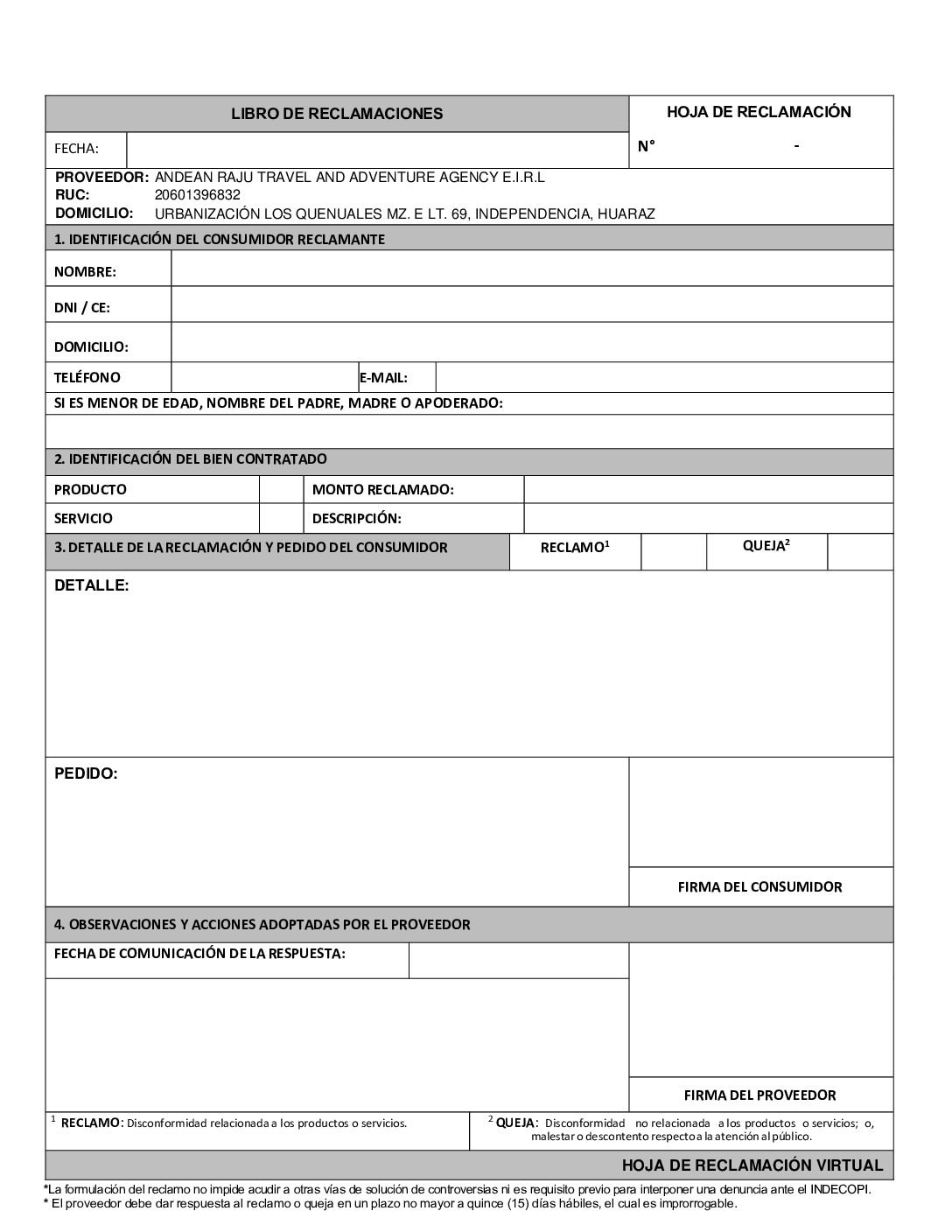 LIBRO DE RECLAMACIONES