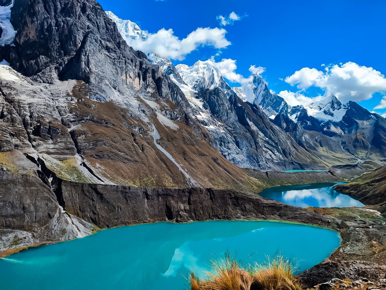 En nuestro tercer día de caminata, daremos inicio a la jornada a tempranas horas. Este día es uno de los mejores del circuito Huayhuash, porque podrán disfrutar de la espectacular amanecer y salida del sol que permiten el reflejo de los picos nevados en la laguna Carhuacocha. Tras disfrutar este hermoso paisaje continuamos con la caminata y empezaremos el ascenso hacia el mirador de las lagunas de color turquesa: Laguna Siula, Quesillococha y Azulcocha. Luego de un breve descanso continuamos nuestro camino cuesta arriba hasta el Paso Siula, desde este punto tendremos vista de la cordillera Raura, un increíble lugar para quedarse durante un buen tiempo y disfrutar del hermoso paisaje. Para la hora del almuerzo, nos espera nuestra zona de lunch ya instalada a 5 minutos del paso Siula